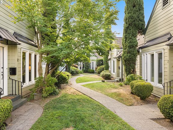 This 1928 built English Courtyard Condo in the Hawthorne District will charm your socks off! Exceptional floor plan across the 682 SF main level with untapped opportunity in gaining square footage on the lower level. This lovely modernized condo hasn’t lost its history, with original hardwoods, built-ins, walk-in closets, modernized heating + cooling, and updated casement windows. Sweet kitchen with granite counters, gas range, stainless appliances–so much functionality for a small kitchen! The formal living room is spacious with tray ceilings, floor to ceiling windows, walk in coat closet, mini-split unit plus a ceiling fan. The bathroom is clean + bright with a soaking tub and Kohler fixtures. Fabulous Hunter Douglas window covers throughout the condo. The bedroom faces the back garden area and has a walk in closet and tons of natural light + ceiling fan + mini split unit. From the kitchen door to back covered porch, where in/out access a breeze. Down the stairs to the basement level, a dedicated laundry space with washer/dryer plus stationary sink. Turn this into a finished home office, art studio or pack it full of gear, almost 250 SF on lower level. The condo building has completed some recent exterior work, to include new hardi plank siding, comp roof, gutters + awnings at no cost to the next owner. Fun location, reliable street parking, exceptional jumping off point. Tour this quiet and comfortable condo and dream up your own place!! You can enter this unit two ways: Formal way is through the courtyard to Unit 10 front door, located on SE 30th between Hawthorne + Madison.