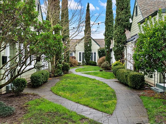 OPEN HOUSE Sunday 4/6/25 -- 11:00-1:00. A vintage English garden right in the heart of Hawthorne. What a great location with everything Hawthorne has to offer right outside your door. Walking score 95. Biking score 99. You'll love this home before even stepping through the door--the courtyard is truly special, and feels like a garden tour, with each season bringing something new. New hardiplank siding on all units. This charming home has so much character, has high ceilings, and lives large. The spacious living room features views of the lush courtyard, hardwood floors, closet, and coved ceiling/doorways. It opens to the dining room with built-in corner cabinet, and newly built in-unit laundry area--nicely hidden behind sliding door--includes stacking washer/dryer. Functional kitchen has lots of cabinets and counter space, and includes stainless steel appliances. Pop out the back door and you'll find the basement downstairs--ready for use as gym, office, studio, storage, etc. Good-sized bedroom has hardwood floors and large closet. More storage in the hallway. Stylish, updated bathroom includes large tub, and new vanity sink. This darling home has so much to offer--it's a MUST SEE. [Home Energy Score = 4. HES Report at https://rpt.greenbuildingregistry.com/hes/OR10185186]