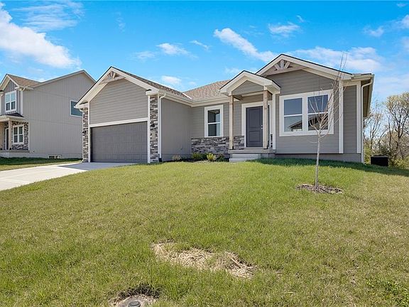 Move-in ready! Welcome to the Brookfield! This stunning ranch home offers the perfect blend of comfort and elegance. With a spacious total of 2,246 square feet, this residence boasts a thoughtful design that caters to both relaxation and functionality. The main floor features an airy and open layout with 9-foot ceilings, creating an inviting atmosphere. The heart of the home is a beautifully appointed kitchen, where modern appliances harmonize with sleek countertops and ample cabinetry, making meal preparation an absolute delight. The adjoining living and dining areas seamlessly flow, offering a versatile space for both entertaining and cozy gatherings. This ranch home offers a total of 4 bedrooms and 3 bathrooms, providing ample space for family and guests. The primary bedroom stands out with its spaciousness and comfort, highlighted by a generous walk-in closet that provides an abundance of storage. Pamper yourself in the en-suite bathroom, where a carefully designed layout, elegant fixtures, and a soothing color palette create a spa-like experience. Additionally, the finished basement adds a wealth of possibilities, from a recreation room to a home office or gym, ensuring there's a space for every need. With its harmonious blend of design, functionality, and comfort, this ranch home is a true gem for those seeking a balanced and refined living experience. Located in the desirable Grain Valley school district.