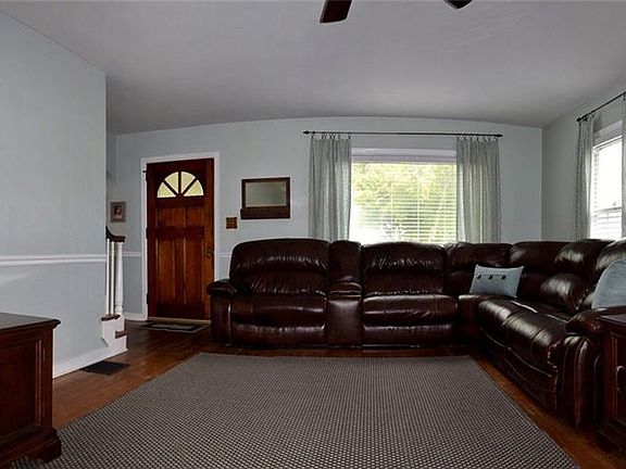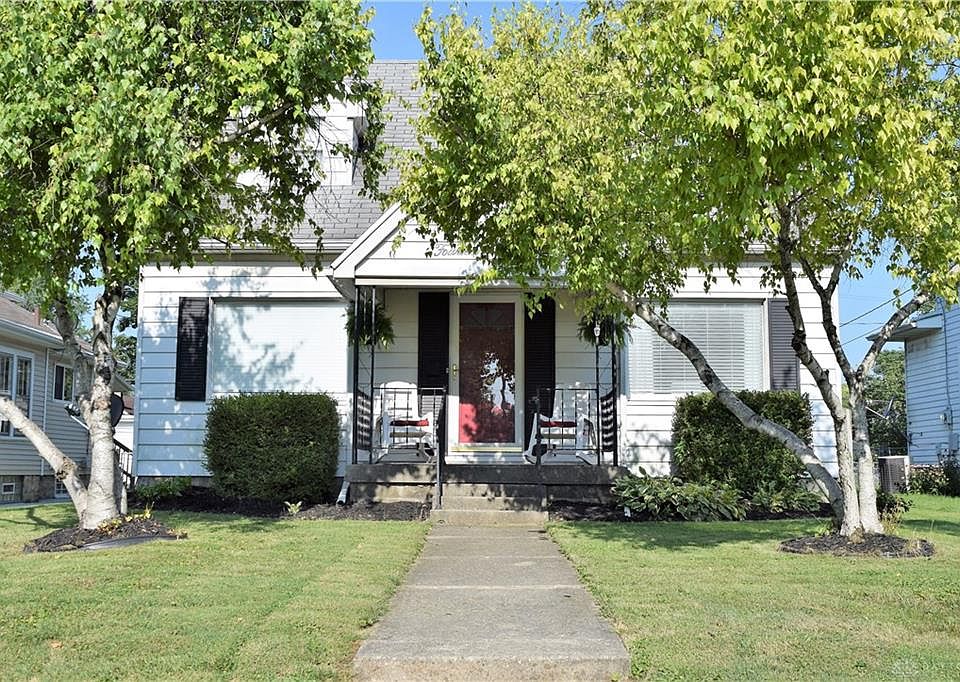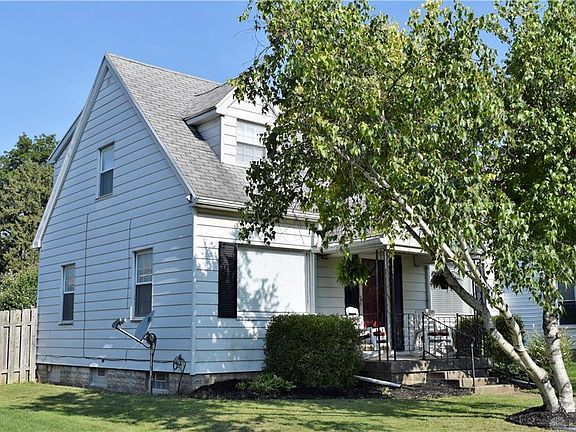 Adorable 2 bedroom home! Great starter home with charm. Hardwood floors throughout except bath and kitchen. All appliances included. Large, but cozy, living room with decorative fireplace. Newer, white interior doors. Semi-finished "cave man" room in basement. Block windows with air vents in the basement. Nice, covered front porch. Beautiful fenced back yard with patio for dining plus a separate 14x14 brick paver patio with fire pit in the middle for casual entertain. Stone walkway to 2 car garage with extra parking on the side. Don't miss your chance to own this charming home.