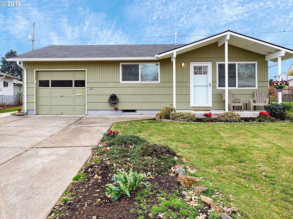 This Woodburn Senior Estates & Golf stylish 1 bed/1 bth has xtra bonus rm w/many potential uses!It's move-in ready,well maintained,fresh paint in & out,updtd fixtures,wall A/C cools air in Summer,all applncs stay,covrd patio,xtra deep garage,landscaping,vinyl windows,roof antenna wired to 3 rms for many no cost tv channels,extior solar security lghts,apple,plum,cherry trees&blueberries.Pool,fitness,golf,restaurant etc.See attachment!