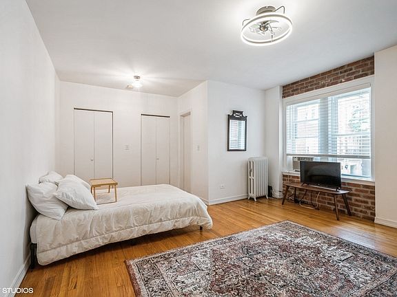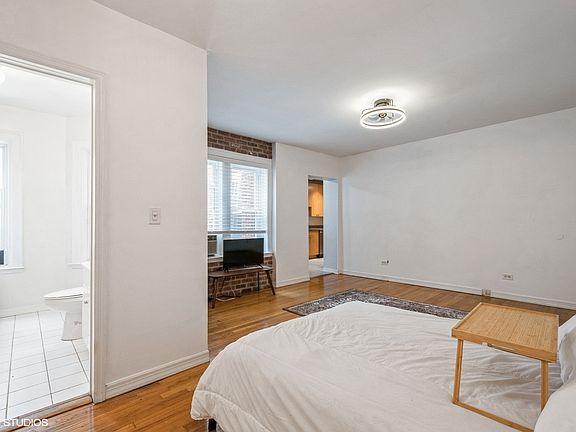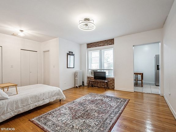 This bright studio apartment is situated in a meticulously maintained vintage courtyard in the heart of Rogers Park's Glenwood Arts District. Recently repainted, the unit boasts a spacious living room and sleeping area that can be easily configured into two distinct spaces. It features a separate eat-in kitchen with tons of cabinets and appliances from 2022, ample closet space with new built-in shelving, and the convenience of in-unit laundry. Heat is included in the monthly assessment. The building is pet-friendly and offers bike and AC storage as well as additional dedicated storage space. Located just blocks from the beach and lakefront, grocery stores, the Morse Red Line train stop, and a variety of bars and restaurants, this apartment offers both comfort and convenience.