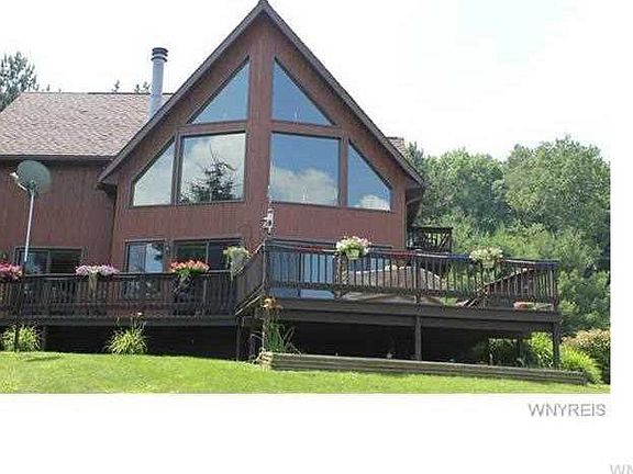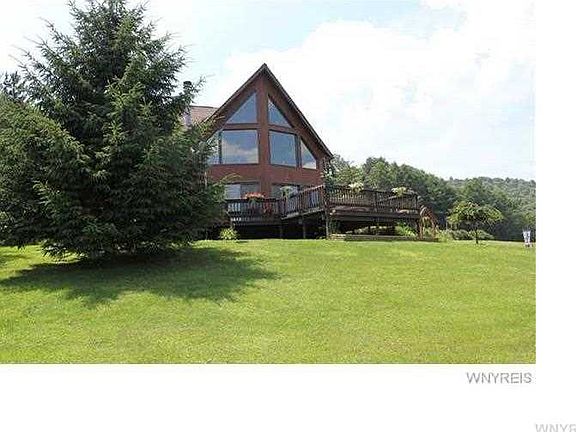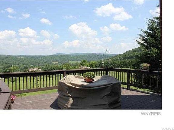 Beautiful three bedroom two bath home in a very desirable rural setting. Enjoy the million dollar view of the surrounding valley on the wraparound deck or from the inside in the loft family room or main floor dining area. Master bedroom and bath on the first floor plus large family room with fireplace and two bedrooms in the loft area. Extremely efficient geothermal heat and cool system means low utility bills year round. Country setting but close to all the amenities of the Olean area.