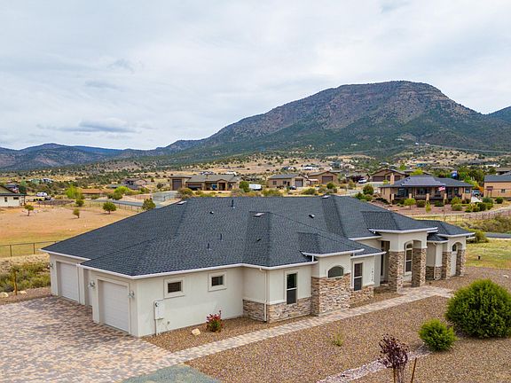 Newly installed wrought iron fence in backyard!! This beautifully designed home sits on a spacious 2.35 acre lot and offers ample space for horses or the addition of an RV garage. Low maintenance and amenities like tankless hot water heater with recirc, Quartz countertops, luxury vinyl flooring, stainless steel appliances. Stunning views of Mingus Mountain. The home boasts high-quality construction, including fully sheared 2x6 exterior walls with R-21 sprayed cellulose for maximum energy efficiency. Seamless connectivity with structured wiring and wiring for Satellite. Large back patio for entertaining. Landscaped. 40 gpm well production!!