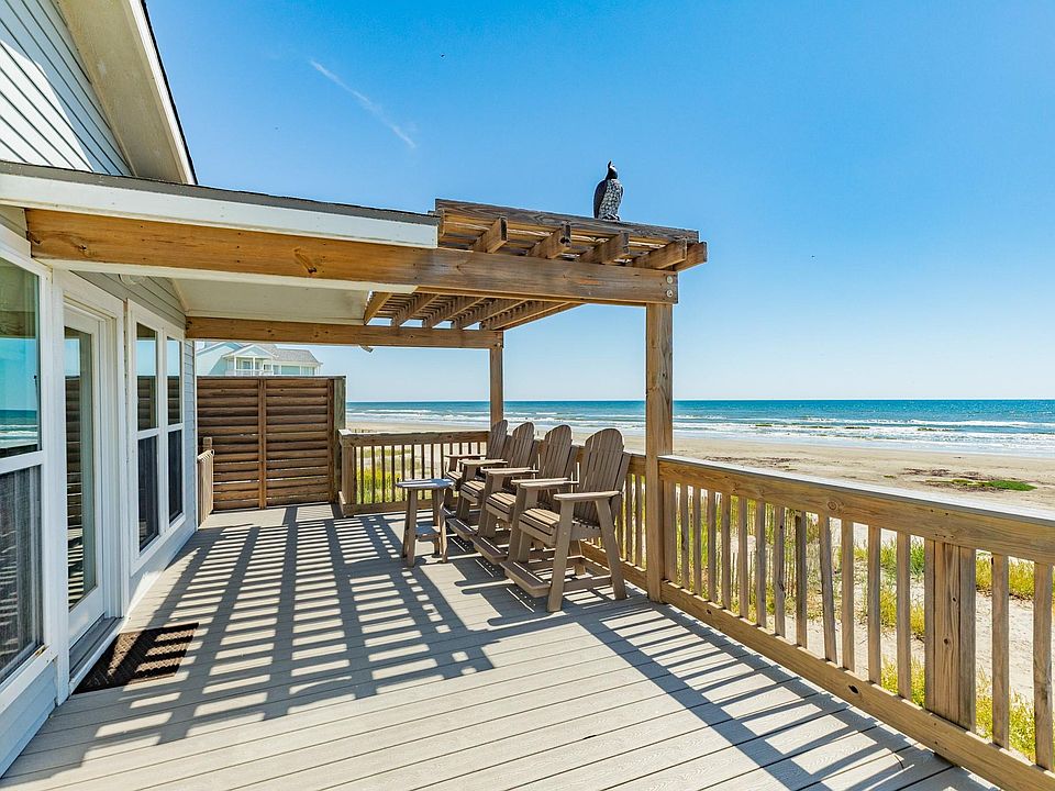 Perfectly positioned between Pirates Beach & Pirates Beach West, this charming 2-bedroom, 2-bath beachfront cottage offers a dreamy coastal retreat with unobstructed Gulf views. The spacious living room features soaring ceilings, a wood-burning fireplace, and panoramic beachfront scenery that brings the outdoors in.