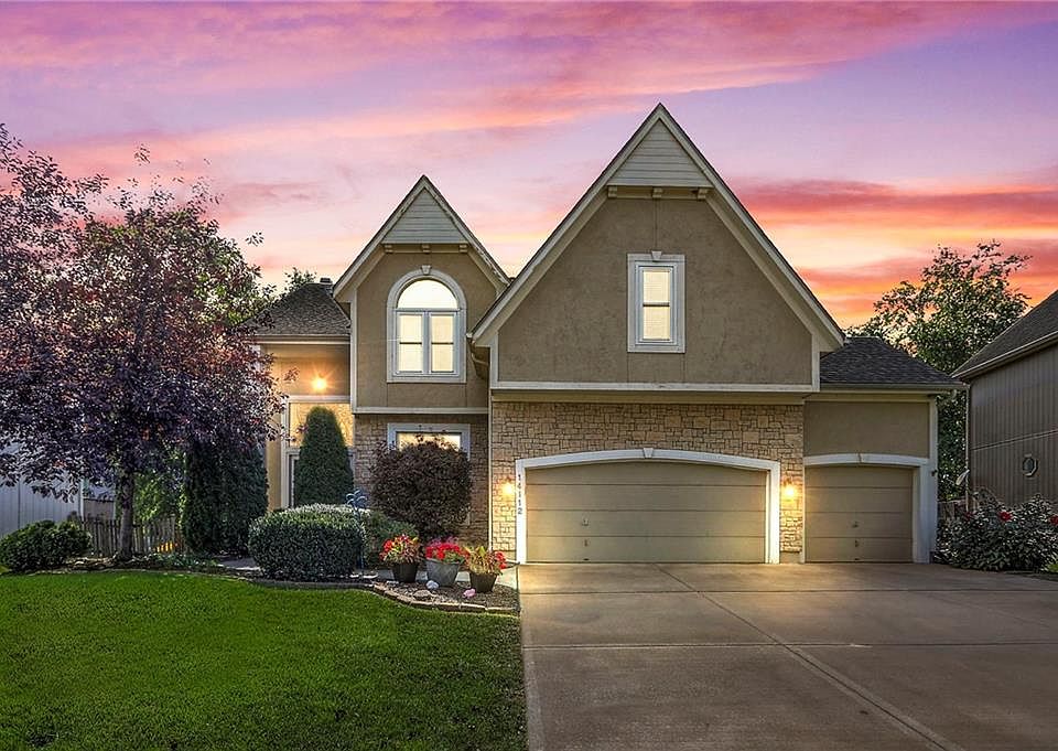 Welcome to sustainable luxury at this exceptional residence nestled on a terrific lot in the coveted Amesbury Lake subdivision. Blue Valley School District. With over 3,000 square feet of beautifully designed living space, this 4 bedroom, 3 and 1/2 bath home offers the perfect blend of traditional comfort and sophistication. Enjoy an eat-in kitchen, with beautiful granite/backsplash and induction oven, for the chef in your family. Generously sized bedrooms and maintenance free upgrades including new roof and new hot water heater in 2025, with no worries in sight. All appliances stay! The bonus front room, with large picture window makes a beautiful spot to take your morning coffee. The back yard provides a retreat like patio featuring mature landscaping, a nice spot for grilling and a sprinkler system. For indoor gatherings the updated basement is a hang out spot for your next Football house party, including a small fridge and plumbing installed for a basement bar/sink. This is a rare opportunity to own a well maintained home in one of the area's most sought-after communities. Schedule your private showing today. Recent price drop. Motivated seller