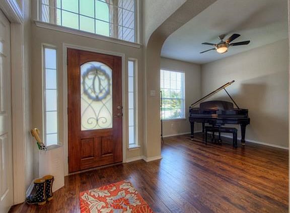 This home has it all! Beautiful 5 bdrm, 4 bath home~desirable Avery Ranch w/many upgrades! 1st floor bdrm w/full bath, upstairs laundry room, extensive engineered wood flooring, lots of tile & a large covered patio w/full sprinkler system front & back. The main living area boasts lots of natural light w/a cozy fireplace! Large second living upstairs or game room area. Jack & Jill bath & another full bath in separate bdrm. Frml dining & study! Leander schools & great location! Easy access~183/620!