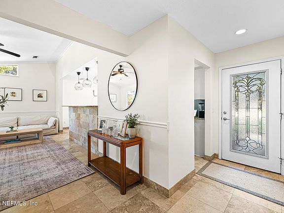 Welcome to this beautifully maintained home just minutes from Jacksonville Beach—where outdoor living takes center stage. The property boasts a large, newly sodded yard with a full irrigation system and mature privacy trees, creating a serene retreat perfect for relaxing, entertaining, or play.