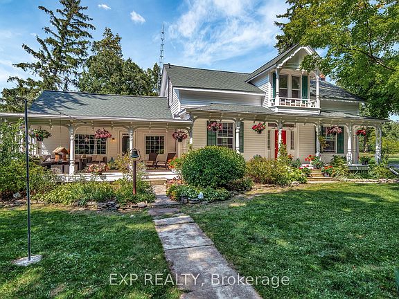 Built in 1832, this historic farmhouse is one of the original homesteads in Prince Edward County, set on a spacious 22 acres of stunning countryside. A rare blend of heritage, and modern updates; this home offers space, beauty, and timeless charm. Step inside and discover original mural artwork uncovered on the walls of the living & dining rooms, wide-plank floors, and timeless craftsmanship. The home offers 4 spacious bedrooms and 2.5 baths, including a renovated upper bath with a classic clawfoot tub and double copper sinks. The main level features a fully renovated kitchen & bathroom, with the kitchen featuring soapstone counters and sink, with carrera marble back splash, custom cabinetry, and an island perfect for family gatherings. The inviting living room showcases cozy wood burning fireplace, built-in shelving, while the dining room's rich wood tones and murals make it a true conversation piece. With main floor laundry and large rear mud room, the hustle of family life becomes manageable. Moving outside, the stunning grand porch runs across the entire home to a deep kitchen-wing verandah, cozy up, sit, and enjoy some of the County's most stunning sunsets. With 22 private acres, enjoy a variety of trees, abundant perennial gardens, a small pond, trails to the creek, matured natural planning & wetlands filled with wildlife. The artesian well was found to have ample amounts of water to supply home and all of the other needs of the property. The outdoor wood boiler is large enough to accommodate the entire home and other buildings, or you may choose to use the propane high efficiency furnace as your main heat source. The Millennium Trail runs parallel to the property allowing easy access for cycling, walking, 4-wheeling, snowmobiling, and x country skiing. Conveniently located just minutes from wineries, shops and Lake Ontario's beaches; this opportunity to own a true piece of County history, ready to begin it's next chapter could be yours!