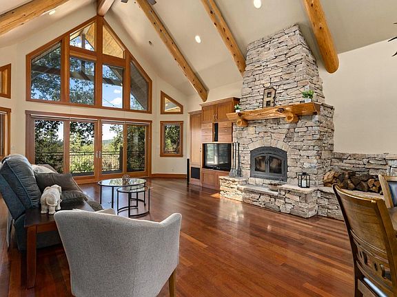 Fabulous home built by Carl Van Son has a bit of everything and is perfect for those seeking a combination of luxury, privacy, room for horses, and gardens, and beautiful sunset views. Gorgeous hand-hewn beamed cathedral ceilings, floor-to-ceiling stone wood burning fireplace and Brazilian cherry hardwood floors. All day-to-day living is on the main level with gorgeous master suite, 2nd bedroom, plus an office/den with Murphy bed. Downstairs features two additional bedrooms. Kitchen features granite counters, New Hampshire cherry cabinets and subzero fridge. Property is set up for horses, llamas, livestock, and more. The barn has three stalls and one outside enclosed large foaling stall, tack room and storage, a 2-acre barnyard, 3-4 acre part NID irrigated pasture. All of this 10-acre property is fenced and cross fenced. Solar owned. Generator included. All of this is a short drive to Rollins Lake, Interstate 80 and downtown Grass Valley/Nevada City.