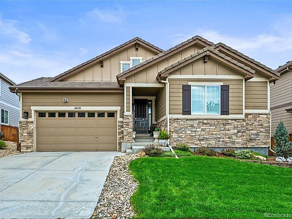 With 4 bedrooms, 3 bathrooms, and nearly 4,900 square feet, this ranch style home combines modern upgrades with a warm, inviting layout designed for both everyday living and entertaining. Step inside to find true hardwood floors throughout the main level, complemented by plantation shutters in every room and statement 8’ paneled doors that add a custom touch. The open kitchen is a true centerpiece, featuring an oversized quartz island, farmhouse sink, designer quartz backsplash, premium faucets, and Monogram gas cooktop. A brand-new dishwasher and huge walk-in pantry make the space as functional as it is beautiful. The spacious great room flows seamlessly from the kitchen, with a cozy fireplace and plenty of natural light. Retreat to the luxuriously renovated primary suite, boasting marble tile, statement walls, a spa-inspired shower with ½-inch glass doors, upgraded cabinetry, and a touch-light mirror with adjustable colors. The additional upstairs bathroom is equally upgraded, with quartz surfaces, a double sink, and glass shower doors. The finished basement extends the living space with a kitchenette featuring quartz counters and upgraded cabinetry, along with a large rec room, guest suite, and ample storage. Outdoor living is made easy with a covered back porch and remote-controlled rolling shades, while the reinforced fencing keeps pets in and critters out. A wrought iron front security door and 8 garage wall cabinets add both security and functionality. Freshly painted inside and out, this home is truly move-in ready. Best of all, you’ll love the lifestyle that comes with Stepping Stone: a community pool, clubhouse, parks, and miles of trails, all just a short walk away. This location puts you close to everything, too: DTC, Denver, Park Meadows, parks, outdoor spaces, and more.