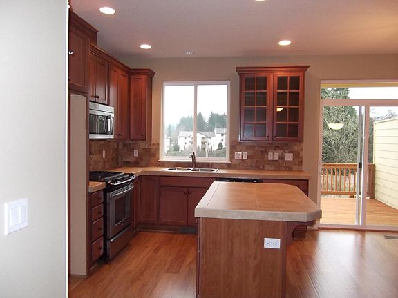 This 3 bedroom 2 1/2 bathroom townhome is amazing. It has large rooms throughout. The main floor has a nice entry area, the 1/2 bathroom, a living room with gas fireplace. The kitchen has lots of counter space, stainless steel appliances, which includes a gas range, refer, microwave and dishwasher. There is also a nice pantry. The kitchen has an island with an overhang for bar stools. The nook is large and opens out onto a covered deck and small fenced yard. Upstairs has 2 nice sized bedrooms next to the full bathroom and laundry room. The master bedroom is very large with a HUGE walk in closet and a full bathroom.