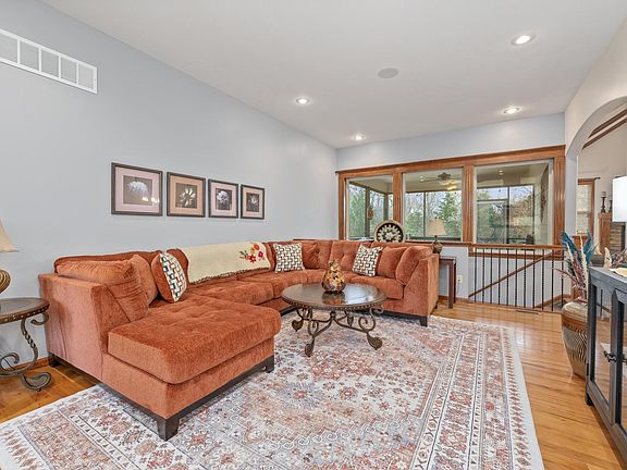 Stunning, fully updated home in an exceptional location! This beautifully maintained property sits on a large, private lot with mature trees and pond views, offering both space and serenity. Inside, the home shows like a model with fresh, modern finishes including NEW interior paint, NEW carpet, NEW HVAC system, newer hot water heater. Vaulted ceilings and warm wood floors create a bright, open feel throughout the main level. The open-concept kitchen, dining, and living areas are ideal for entertaining and everyday living and feature granite countertops, gas cooktop, oversized island, custom backsplash, and a huge walk-in pantry. The split-bedroom floor plan offers a private primary suite with double sinks, soaking tub, separate shower, and large walk-in closet. The finished basement includes a spacious family room with projector and surround sound, large rec area, full bar, two additional rooms, and full bath — perfect for movie nights or hosting. Outdoor living shines with a covered, screened deck, large patio, wrought iron fencing, and a rare, oversized yard. Unmatched garage space with a 4-car garage, 12’ ceilings, high-lift door, rear access door, painted floors, built-in storage, and workbench — perfect for car enthusiasts, hobbies, or extra storage. Amazing neighborhood, great schools, easy access to major roads and amenities — this home offers luxury, space, and location all in one. A must-see property that truly shows beautifully!