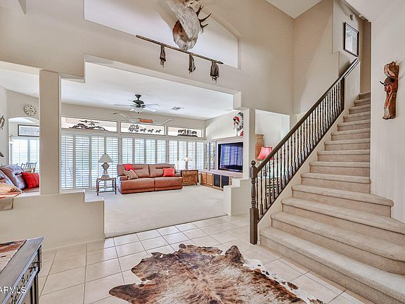 Welcome Home to your Pristine fully furnished, beautiful & unique 2-story home in Sun City West 55+ community! Main level offers 2 bedrooms, 1.75 baths, an office & hobby room. Open kitchen flows into living room w/ beehive fireplace & eat-in area, plus a welcoming family room at entry. Spacious primary suite includes 2 closets, private stall option, dual sinks & large shower. Upstairs retreat features a versatile bedroom/office/den/art room w/ full bath—perfect for guests or hobbies. Newer furnaces & AC units, water heater, washer and dryer, stove-refrigerator- dishwasher and electrical box. Low-maintenance yard w/ extended covered patio. 2-car garage & ½ bay for golf cart with newer garage door & lift, epoxy flooring & plenty of lights/outlets. See Upgrades List Attached.