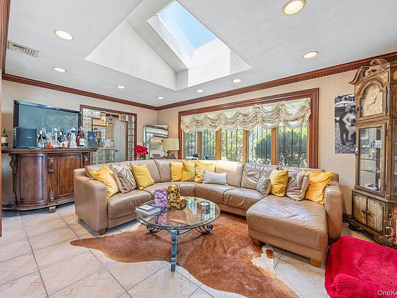 Welcome to this beautifully maintained ranch-style home set on an oversized 47’ x 105’ corner lot in the heart of Whitestone. This 3-bedroom, 3-bath gem offers bright, open living with a sun-filled open concept living room & dining room featuring a skylight, coffered ceiling with crown moldings, and central air conditioning for year-round comfort. The dining room’s sliding doors lead to a lush side yard, creating a seamless indoor-outdoor flow.