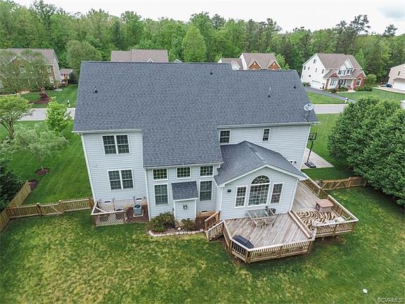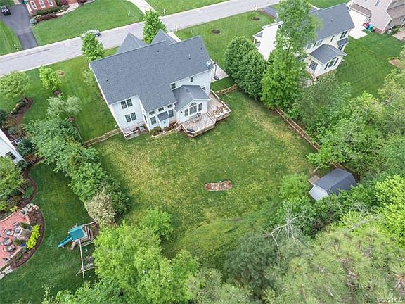 Gorgeous brick front transitional on .60 Acre Lot on a Cul-de-Sac street within close proximity of Robious Landing Park and James River High School! Enter the 2 Story Foyer to a dramatic Wood Stair Case flanked by Formal Living and Dining Room with Hardwood floors, Triple Crown Moldings and 9' Ceilings throughout the first floor. Enjoy an open and bright vaulted Family Room in an Open Floor Plan Design overlooking the large private fenced yard. The expansive Cook's Kitchen offers Granite, Stainless Appliances, Double Ovens, Tile Floor & Backsplash, Both a center Island and Breakfast Bar, Desk Area and Sunny Breakfast Room. Utilize additional first level room as an office or family play room! Take one of 2 staircases to the 2nd level boasting a 4 spacious bedrooms. The Master Suite includes a large sitting room, Private bath with dual vanity, and His & Hers Closets. A finished 3rd Level with Full Bath adds Flex Room to use as a Media/Rec Room or Bedroom suite. The large fenced yard includes a detached storage shed to supplement the 2.5 Attached Garage. Lenox Forest at River Downs is less than 5 minutes to 288!