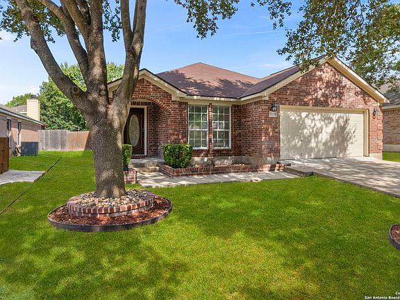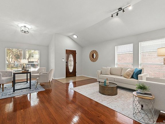 Nestled in the highly sought-after Churchill Estates neighborhood, this beautifully maintained 3-bedroom, 2-bathroom home blends timeless charm with modern updates. Hardwood and tile floors flow throughout the open living space, complemented by granite countertops and a cozy fireplace that sets the tone for gatherings or quiet evenings in. The spacious kitchen is a chef's delight, featuring abundant cabinet storage, stainless steel appliances, and granite countertops with plenty of prep space. A flexible front room adds versatility, perfect for a formal living/dining space or a home office. The primary suite and secondary bedrooms include ceiling fans for added comfort, while recent upgrades provide peace of mind with a new roof (2020), HVAC system (2022), and water heater (2022). Additional features include plumbing prep for a water softener and thoughtful design throughout. Step outside to enjoy a nice-sized yard with a covered patio, ideal for outdoor entertaining or relaxing afternoons. Community amenities elevate the lifestyle further, with a renovated pool, updated park, and courts for volleyball, basketball, pickleball, and tennis; plus the special treat of local deer that frequent the neighborhood park. Conveniently located near ample shopping and dining, this home offers a perfect balance of comfort, convenience, and community in one of San Antonio's most desirable neighborhoods.