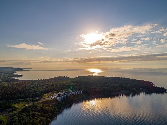 Incredible view of Lake Superior with a nice pine tree for accent! This is a full ownership of the 3 rooms, there is a main entrance into the Kitchen, Dining room and Living room with access to the primary suite with own soaking tub, fireplace and spectacular views and secured access to the 2nd bedroom that can be its own lock out rental or part of this unit There is a kitchenette, soaking tub, 3/4 bath, fireplace and wonderful views of Lake Superior! Currently not in the rental pool but you absolutely can join and make some income while you are not there. Building 3 has the pool and outdoor hot tub area overlooking the lake. Elevator access and parking out front. There are some extra reserves being taken out of the fee's to maintain the shoreline and do some routine maintenance. This property has recently been connected the paved biking/walking trail to access town, the lighthouse, breakwall and watch the ore boats come in, no car needed! Call for your one on one showing soon!