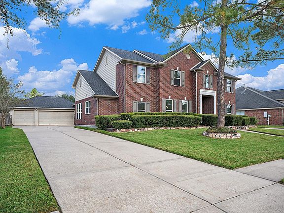 Move-in-ready. Recently updated. Welcome to this stunning 4 bedrooms, 3.5 baths, 3 oversized detached garage home nested on a quiet street of Wilderness Trails. This two story boasts a functional open-concept design with large family room; formal dinning room & living room; large kitchen with breakfast bar seating. The gourmet kitchen is equipped with a huge island and 42" freshly painted cabinets. The primary suite is tucked away downstairs and features a jetted tub, standing shower, dual vanities, and a generous walk-in closet. Recent updates included fresh paint throughout the house, new Quartz countertops, new roof (2024), right fence (2024), new double-pane low-e windows, A/C upstairs (2023), A/C downstairs (2021), fresh paint on all kitchen cabinets & all bath vanity cabinets. Other features include bamboo wood floor in second floor, sprinkler system, water softener, double long driveway, landscape lightings at the front of the house. This house has never been flooded.