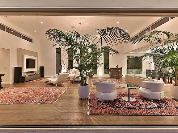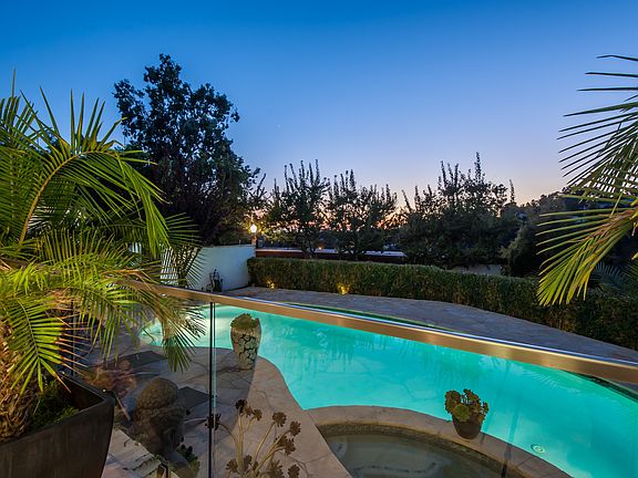 This stunning modern architectural home is perched among the treetops just off Summitridge Drive providing a sophisticated and elegant design for the most luxurious lifestyle. The open concept indoor/outdoor living area was designed for grand entertaining with a 21 foot bifold window to the pool and outdoor fireplace. Beautiful natural materials used throughout highlight the simplicity and grandeur of the space, with Italian Murano glass chandeliers, and a Bontempi kitchen with white Caesarstone counter tops and Miele appliances. Timeless finishes have been installed throughout the home with french oak hardwood floors and Porcelanosa tile work. A built-in glass fireplace separates the dining and living rooms. A true master suite with its own outdoor terrace, spa-like bath, and spacious walk-in closet. Positively a unique and serene oasis.