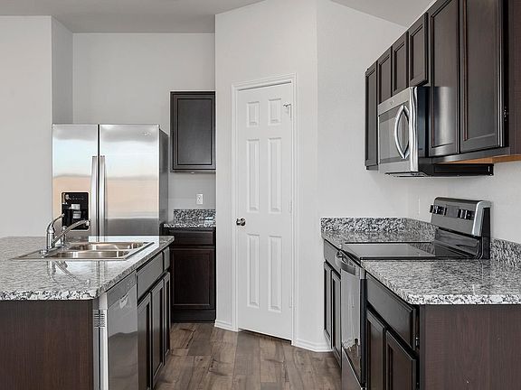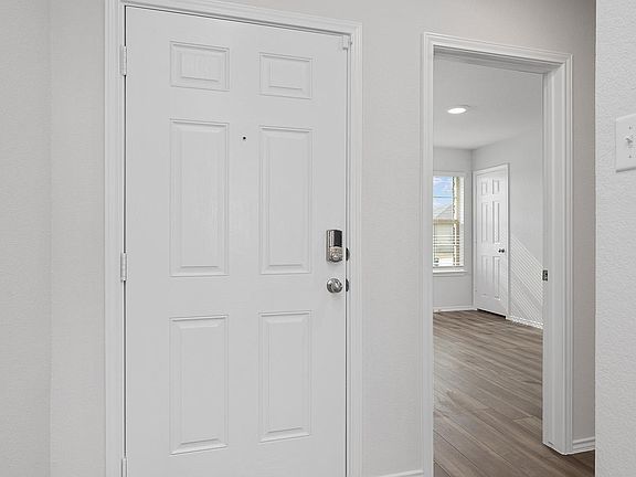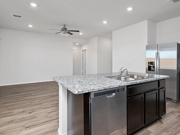 Our Bellvue is one of our one-story floorplans feature in our Oak Ridge community in Temple, Texas. This comfortable 3 bedroom and 2-bathroom home is the perfect fit for you. Inside this home, you’ll find approximately 1,415 square feet and has an open-concept layout designed to fit your needs. This home has beautiful features that create a welcoming ambiance, and the 2-car garage ensures plenty of space for vehicles and storage. The beautiful kitchen with shaker-style cabinetry and granite countertops. It is set off from the living area by a kitchen island with a built-in sink. End your day by relaxing under the covered patio, where you can enjoy the nature from the backyard. The primary bedroom will make you feel right at home. With an attached primary bathroom, starting your day or winding down will be a breeze. A large walk-in closet ensures plenty of storage space. The spacious secondary bedrooms are carpeted and have easy access to the laundry room and secondary bathroom. Every D.R. Horton home has smart home technology built in. Feel connected as you control and secure your home through the Qolsys smart panel, through your phone, or even with your voice. Find your home today with the Bellvue floorplan.