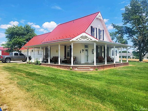 Come to the country! This farmhouse has a lot to offer with open kitchen, living room, & dining area. Kitchen area is spacious with an island & appliances to stay. Primary suite is also located on the main level, as well as the laundry room with half bath. There is also an expansive upper level with lots of possibilities. This property also features a 3-car attached garage (1000sf) with heater, large concrete patio with basketball goal, & 2520sf pole building that is partially concrete. With 4.673 acres, this property has plenty of room to roam & escape to country living, but is also a quick drive to the bypass.
