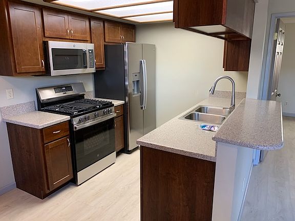 COMPLETELY REMODELED! Fresh Paint, Laminate Flooring, Blinds, All NEW Stainless Steel Appliances; Stove, Refrigerator, Microwave, Dishwasher Downstairs Unit, Carport, Patio, Laundry Room on Property, Gated Building Close to stores, public transportation, and Freeways This is a month to month tenancy. Owner Pays Water, Trash & Sewer, Tenant pays Gas & Electric Owner also maintains lawn In order to qualify, you must have good credit, no evictions, good rental references and make 2x the amount of the rent; verified by paycheck stubs, tax return or award letter(s) Section 8 will be considered provided all the qualifying requirements are met. Owner will only allow SPECTRUM for internet/tv/cable provider This is a non-smoking unit; smoking allowed at the street ONLY