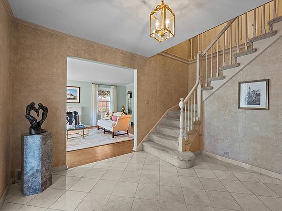 Set in the well-established Bonnie Glen neighborhood, this 4-bedroom, 2.1 bath home offers generous living space, and a comfortable layout. The main level features a spacious foyer leading into a light-filled living room with bay window overlooking the front yard. The adjoining dining room, with picture windows facing the backyard and deck, provides an inviting space for gatherings. The kitchen offers a central island, table area, and wet bar, which flows into the comfortable family room with bay window, fireplace and sliding glass doors to the back patio and pergola. Hardwood floors run throughout the main level, which also includes a large half bath for guests. Upstairs, you'll find a spacious primary suite, three additional bedrooms, and a full hall bath, along with two large hallway closets offering additional storage. There is hardwood flooring under the carpeting on the second floor. The finished basement provides even more usable space, featuring a rec room with wet bar, a dedicated laundry room, and a large storage area. Outside, the backyard features a brick patio and pergolas - ideal for casual outdoor living. This solid, well-loved home is ready for its next chapter, and provides a great opportunity to personalize over time. Located just minutes from downtown Glenview, this home is close to shopping, dining, and upcoming downtown improvements that are bringing new energy and amenities to the area. Being sold "as-is".
