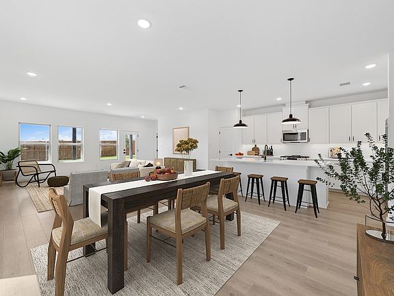 Move in ready! This Tigris II plan offers beautiful laminate flooring in the entry, great room, kitchen and dining area. Open concept with a bright, welcoming kitchen that showcases arctic white quartz countertops, Brellin white shaker cabinets, black metal shade pendant lighting, and stainless steel appliances. The open-concept layout connects all living areas, adding to the home's spacious feel. Enjoy family time upstairs in the loft, which conveniently links to three secondary bedrooms. A covered patio extends off the great room, making for perfect outdoor family get-togethers.