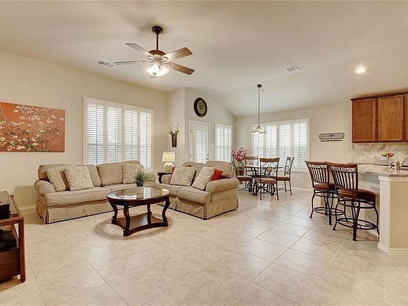 This Garlic Creek west home is a MUST SEE! The bright and airy home boasts gorgeous designer plantation shutters, sleek granite counter tops, 42 inch kitchen cabinets and ceramic tile flooring in all of the main thoroughfares. On the main floor the open concept living area flows right into the grand kitchen island and eat in breakfast area. Home comes with BRAND NEW air conditioner and energy efficient spray foam insulation in the walls. The exceptional layout upstairs has a large bedroom with en suite and a private closet as well as a spacious bonus room. Makes for a fabulous private retreat! Sprinkler system in the front and backyard along with a beautiful covered patio. Walking distant to a bountiful amount of amenities including, walking trails, basketball courts, playground/park, swimming pool, splash pad and fitness center. Easy access to I-35, restaurants and shopping. Welcome Home!