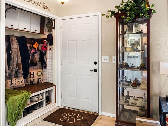 Inside, thoughtful details make daily life more convenient. A built-in drop zone at the entry provides a functional place to hang coats and store shoes, keeping your home organized. The open kitchen is designed with flow in mind, offering a clear view of the patio so you can stay connected while entertaining or simply enjoying the outdoors from inside. The kitchen opens into a large dining area, complete with French doors that lead directly onto the back patio, creating an easy transition between indoor and outdoor living.