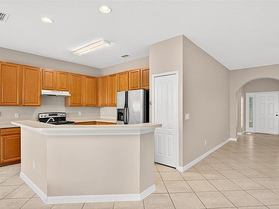 Charming 3-Bedroom, 2-Bathroom Home in the Beautiful Lakefront Community of Pines at Lake Saunders! Welcome to this stylish and move-in-ready home offering comfort, character, and convenience in the heart of Tavares. The open-concept layout features a spacious living and dining area with lofty ceilings and large windows that fill the home with natural light. Fresh designer colors and decorative archways add a custom touch and create a warm, inviting atmosphere throughout. This home showcases tile flooring throughout the entire home for easy maintenance and modern appeal. Both bathrooms have been updated with beautiful new tile in the shower, adding a touch of luxury and freshness. The kitchen is a true highlight—featuring oak-finish cabinetry, stainless steel appliances, a 10.5-foot island breakfast bar, and a window-lined breakfast nook perfect for morning coffee. The primary suite includes French windows, dual mirrored closets, and an en-suite bath with dual vanities, a makeup counter, and a large custom-tiled shower. Additional bedrooms are comfortably sized, including one with a beautiful bay window. Enjoy peaceful evenings on the back patio, shaded by an ornamental awning and overlooking the fully fenced backyard, ideal for children or pets. Additional features include an indoor laundry room, recessed kitchen lighting, ceiling fans throughout, and attractive landscaping. Located just minutes from shopping, dining, hospitals, and top-rated Tavares schools, this home combines small-town charm with modern convenience. A full-featured YMCA is also nearby. Don’t miss this opportunity to own a beautifully maintained home in the desirable Pines at Lake Saunders community!