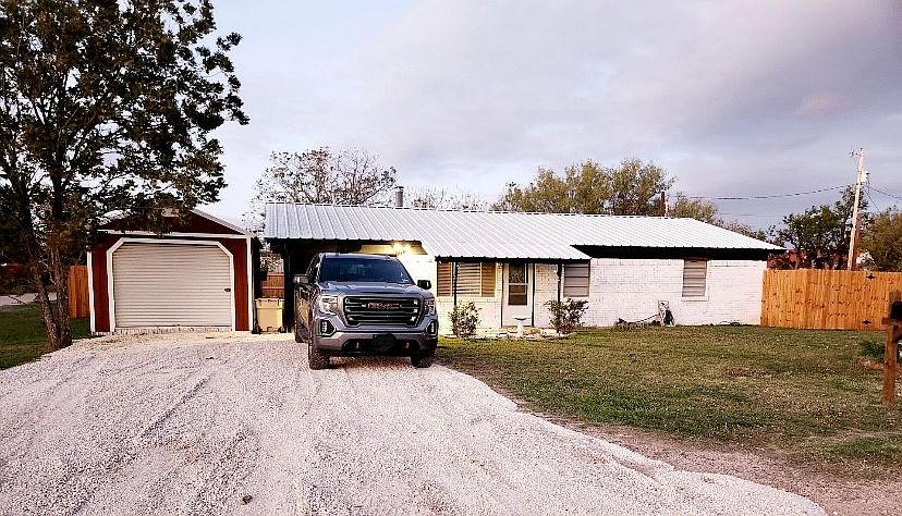 Perfectly updated and move in ready home. This 2 bed 1 bath home offers a friendly open concept floor plan with split bedrooms. The spacious living area flows into the dining room for a perfect entertaining space. The inviting kitchen is freshly improved with newly painted bright cabinets, granite countertops, tile backsplash and matching appliances. Also updated is the bath with new vanity and fixtures. Luxury vinyl plank just installed in the bedrooms, sizeable walk in closets along with fresh paint. You'll enjoy the huge backyard with newer privacy fence, double gated, workshop with electrical, covered parking and additonal storage space. Other recent improvements include exterior paint, landscaping, gravel driveway, new electrical and panel replaced, built in pantry, nest thermostat, security features that include smart lighting. Situated on a large corner lot in small town Texas with just a 10 minute drive into Abilene!