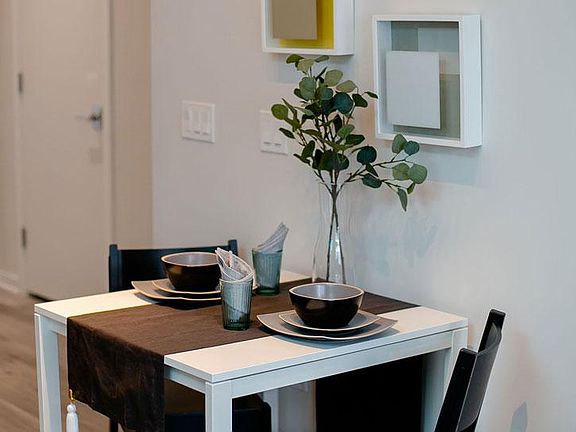 This 652-square-foot apartment at The Hub 31 offers a modern and functional living space, ideal for urban living. It features an open-plan layout that smartly integrates the living room, dining area, and a well-equipped kitchen with contemporary appliances. The bedroom is a comfortable sanctuary, spacious enough for a queen-sized bed and complete with ample closet space. A stylish bathroom with quality fixtures adds to the apartment's appeal. Large windows throughout the apartment ensure a bright and airy atmosphere, highlighting its sleek and welcoming design.