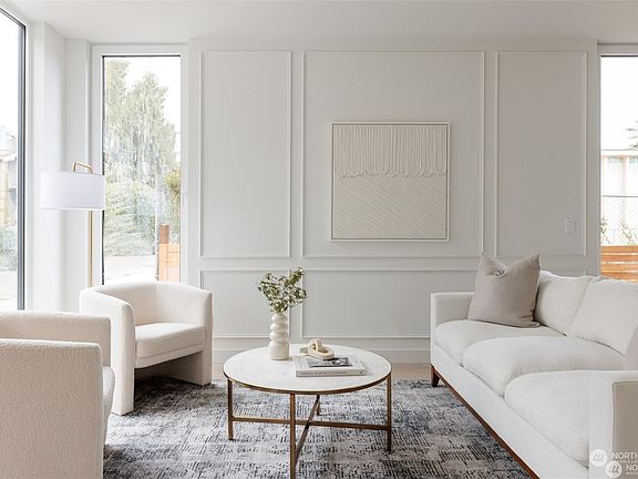 SELLER OFFERING 2/1 RATE BUYDOWN FOR OFFERS ACCEPTED BY 1/31/2025! Experience London-style townhome living! Homes feature white brick facades, panel wall moldings, engineered hardwood floors, and high-end finishes. Floor-to-ceiling windows fill every level with natural light. Main level open floor plan includes a spacious living room with separate dining area and a sleek, all-white kitchen w/ panelized dishwasher, microwave drawer, and integrated wall oven. Upstairs, are four bedrooms plus a luxe primary bath w/marble countertops & free-standing tub. Enjoy views of downtown and the Cascades from the roof deck. Dedicated parking space. EV ready. Close to Queen Anne Ave shops/dining. No HOA dues.