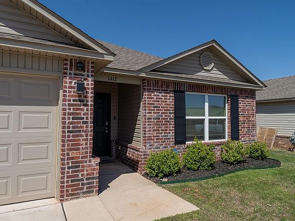 You'll be delighted with this newer construction home, featuring a brick & siding exterior and a charming covered front porch. Inside, an open-concept living/dining/kitchen connect the most lived-in spaces. The kitchen—complete with a gas stove, pantry 7 bar allow access to the patio & fenced (3 sides fenced, owner will complete 4th prior to closing)backyard. The master bedroom includes an ensuite bathroom with a built-in vanity and walk-in closet. Conveniently located near Noble schools, parks, and