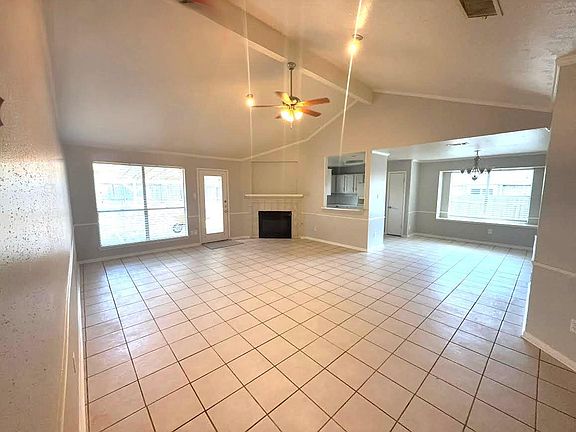 Move in Ready! Welcome home to this 3-bedroom, 2-bath gem! Step inside to discover a fantastic open floor plan, bathed in natural light from the freshly painted living room with its cozy corner fireplace and vaulted ceilings that enhance the bright, airy feel. The kitchen is updated with light-painted cabinets and modern resurfaced countertops that seamlessly flows into a cozy eating area featuring a charming window seat. The primary suite and two additional bedrooms have been updated with fresh paint and new carpet. Generous size backyard with covered patio. Mature trees allow for shading in front and back.