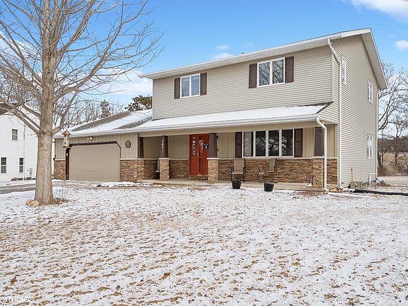 Experience the tranquility of living in town while enjoying the country feel in this stunning home, perfectly situated on a spacious 0.670-acre lot in an established neighborhood. With soothing views of farm fields behind your property and a canopy of mature trees providing shade and serenity, this residence is ideal for those seeking peace after a long, stressful day. Enjoy the scenic route along Riverview Drive on your way home, where every commute feels like a retreat. **Key Features:** **Exterior:** - Expansive 0.670-acre lot with ample backyard space for entertainment and leisure. - Two-stall garage for convenience and flexibility. - Inviting covered front porch with charming stone accents. - Cozy three-season room, perfect for enjoying morning coffee while soaking in the sunrise and beautiful views of the farm fields. - Cement patio, ideal for outdoor gatherings and barbecues. - Additional shed for extra storage needs. **Interior:** - Two separate living rooms on the main floor, designed for gatherings and family time. - Functional kitchen that complements the living space. - Guest bathroom conveniently located on the main floor. - Bright and airy three-season room that allows you to connect with nature year-round. **Upper Level:** - Four spacious bedrooms, including a master suite. - Full bathroom thoughtfully placed for easy access. **Updates & Amenities:** - Fresh, modern paint for a welcoming atmosphere. - Stylish new light fixtures and ceiling fans. - Keyless entry for enhanced security and convenience. - New Google Nest thermostat for easy climate control. - Recently updated pressure tank valve for improved water management. - Enjoy the benefits of well water, perfect for maintaining a lush lawn during the hottest summer months. This home combines comfort, style, and functionality, making it an ideal choice for families or anyone looking to escape to a peaceful retreat. Embrace the beauty of nature while enjoying modern conveniences—this is more than just a home; it's a lifestyle waiting for you! Don’t miss your chance to make this tranquil haven yours!