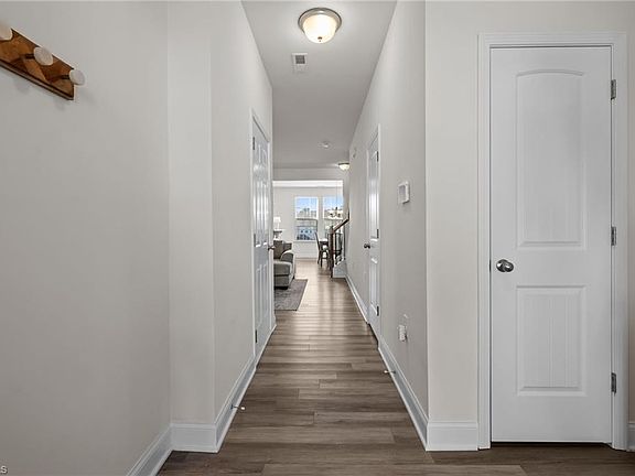 Welcome home to this 3-bed, 2.5-bath end-unit townhome with 1-car garage. Charming stone-front porch & abundant natural light welcome you inside. Open-concept 1st floor features spacious living area, dining room, half bath, & kitchen w/ quartz countertops, stainless appliances, gas range, & large island—perfect for entertaining and everyday living. Elegant wrought iron & wood stair spindles add a designer touch, while luxury vinyl plank flooring flows throughout the main level for durability & style. Upstairs, a convenient laundry closet & generously sized bedrooms await. Bright and expansive owner's suite offers a private sitting area & spa-inspired bath with garden tub, walk-in shower, dual vanities, & tile flooring. Outside, enjoy a wide open common area, plus a community dog park & playground. HOA covers landscaping, gutter cleaning, pressure washing, and termite protection, making this a truly low-maintenance, move-in-ready home! Love where you live!