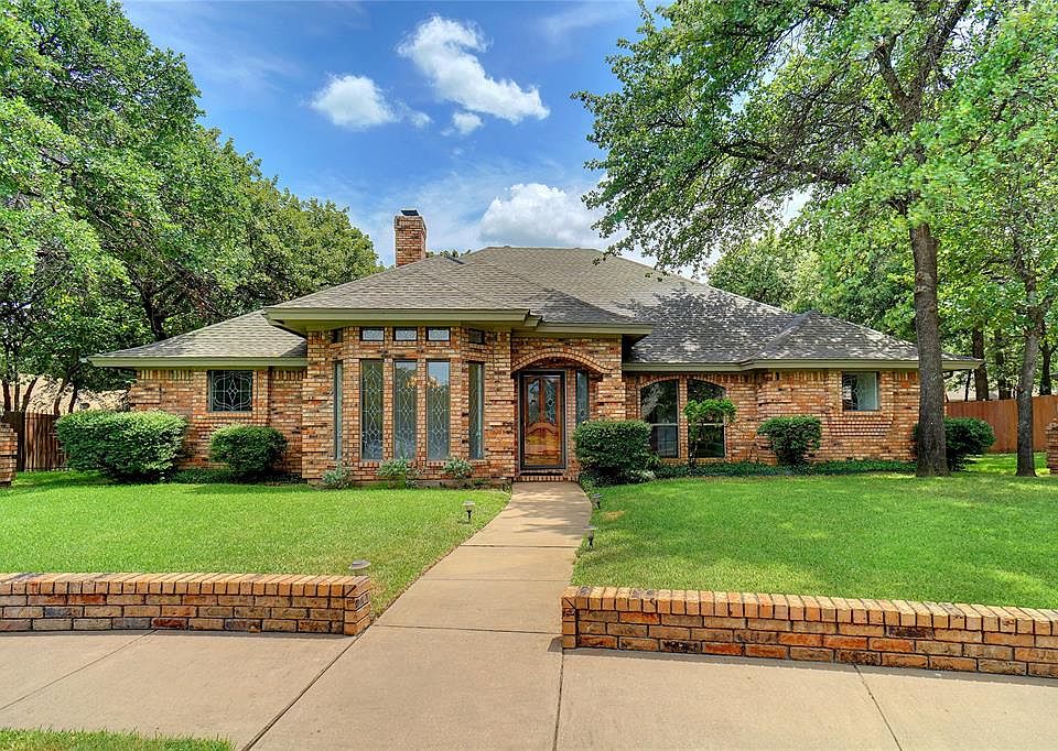 You'll immediately feel at home in this lovely home in Oak Harbor Estates on almost half an acre tree shaded lot! Spacious living area with wood burning fireplace. Adjoining game room with half bath, wet bar & built in wine rack. Kitchen has warm brick accents & top quality granite countertops. Bay window & picture frame molding in dining room. Jack & Jill bath with granite counter tops between secondary bedrooms. Fresh interior paint & new carpeting. New roof in June, 2020. Sparkling inground pool & pool house with half bath. Beautiful yard. Great home for entertaining and family gatherings. Neighborhood access to Eagle Mountain Lake with boat launch, dock, beach area, & playground. Low HOA fees.