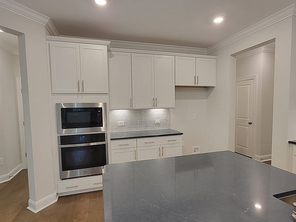 - All stainless steel appliances with a 5-burner gas stove, built-in wall oven and microwave, soft drawer-close cabinets, a backsplash and a walk-in pantry