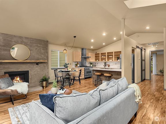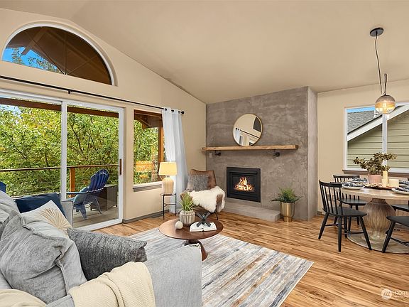 Tastefully updated home in the heart of town, minutes from Whole Foods, downtown and multiple biking and hiking trails. You're going to love the open floor plan, vaulted ceilings and cozy fireplace. Relax on the spacious covered deck which faces west to capture incredible evening sunsets (especially in winter) & the Canadian coastal range. Spacious primary suite with a deck overlooking a private backyard, which is fully fenced with beautiful terracing, fruit trees & mature landscaping. Hot tub can stay! You can relax knowing that in the last 5 years, investments in this home include new roof & gutters, solar panels, ductless mini split (air conditioning!), carpet, appliances & hot water heater. Nothing left to do but move in and enjoy!
