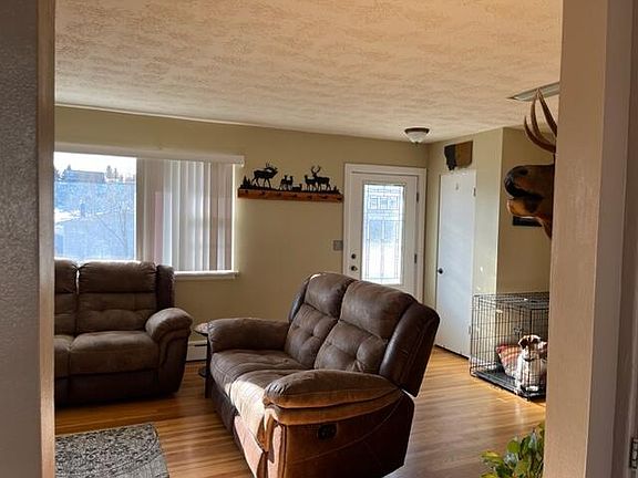 BEAUTIFUL HOME ON A CORNER LOT. On the main floor you will find the living room & dining area with large windows for lots of natural light, updated kitchen cabinets, 2 bedrooms, 1 bathroom, and original hardwood floors. Downstairs you will find the primary bedroom with ensuite, a large storage room, laundry room (with a keg fridge), and large rec room with prewired surround sound for your theater room. The basement also has 3 egress windows and a drainage system with downspouts plumbed in. This lovely home has a 2-car garage, fenced yard, outdoor dog kennel, and is located right off the walking path and near the frog ponds. This home shows pride of ownership in every area and is move-in ready!