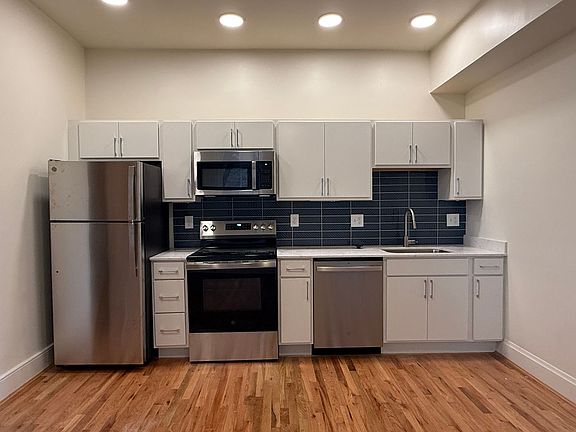 Unit #4 offers 500 SQ FT of space including a kitchen/dining/living area as you enter the apartment and a bright bedroom with a double closet, remote controlled ceiling fan and connecting full-bathroom. The kitchen is equipped with all stainless steel appliances including a dishwasher and plenty of cabinet space. Recessed lighting and hardwood floors add to the unit's style.