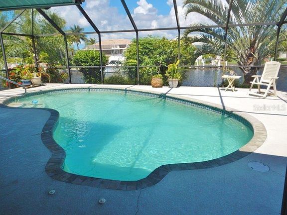 Seasonal rental in high demand area of PGI $5500+12% tax per month, $3500 sec dep, available Jan-March or Jan-April 10th. This beautiful tip lot WATERFRONT view PGI home, has a heated POOL, remodeled gorgeous kitchen with stainless appliances and stunning bathrooms. You will have a primary bedroom with king bed and TV with en-suite bath, and 2 other bedrooms with sleeping accommodations for your guests. The home has comfort, multiple TV's, light and bright. The property is situated on a tip lot with huge water views from most rooms. There is an office/guest suite also for added convenience. The lanai has shade and comfort with such a tropical vacation feel. Spend time away from the cold you will not regret spending winter in a sunshine filled home. Punta Gorda and Port Charlotte where you can enjoy the shores of Charlotte Harbor with its spectacular sunset views, incredible boating, sailing and fishing, a fabulous Downtown quaint Punta Gorda with its' variety of restaurants and shopping, several golf courses, the Pickle Plex and easy access to US-41 and I-75. It's home to many events including a Saturday Farmer's Market, wine walks, art fairs, boat tours, convenient to the Punta Gorda airport, and has 18 miles of bike and pedestrian trails connecting the city. Ask about other fees and details of renting this lovely home.