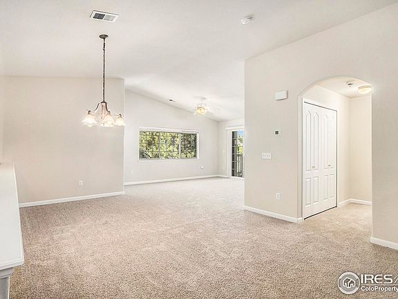 Recently updated condo in Longmont's highly coveted Golden Bear community. Second floor, corner ranch condo with mature evergreen trees creating desirable privacy. Enjoy our Colorado evenings with a cool drink on the large, shady balcony while watching the geese or foxes at the pond on the golf course after a dip in the community pool. Hardwood floor entry and kitchen, brand new carpet, new luxury vinyl plank flooring, gas fireplace, and an oversized 2-car tandem garage only tell part of the story. Easy commute to shopping, restaurants, schools, and I-25. Come check it out for yourself!