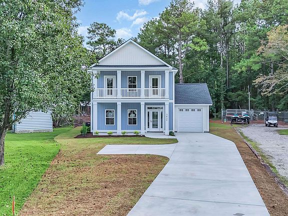 Live the coastal dream in this brand-new 3-bed, 2.5-bath home just 1.5 miles from the beach — and with NO HOA, you have the freedom to bring your boat, RV, or trailer with zero restrictions. Step inside to an inviting open-concept layout where the kitchen and living area flow effortlessly — perfect for entertaining or relaxing after a day on the water. The kitchen shines with quartz countertops, stainless steel appliances, custom wood cabinetry, and easy-care LVP flooring throughout the main level. Upstairs, the spacious primary suite offers a private retreat with its own en-suite bath. Two additional bedrooms share a full bath — and both open to a covered balcony porch, ideal for soaking in ocean breezes morning or night. With modern finishes, smart design, and unbeatable proximity to the coast, this home delivers style, freedom, and that true beach-life feel. Enjoy brand-new construction near it all — beaches, dining, boating, and more. Some photos have been virtually staged.