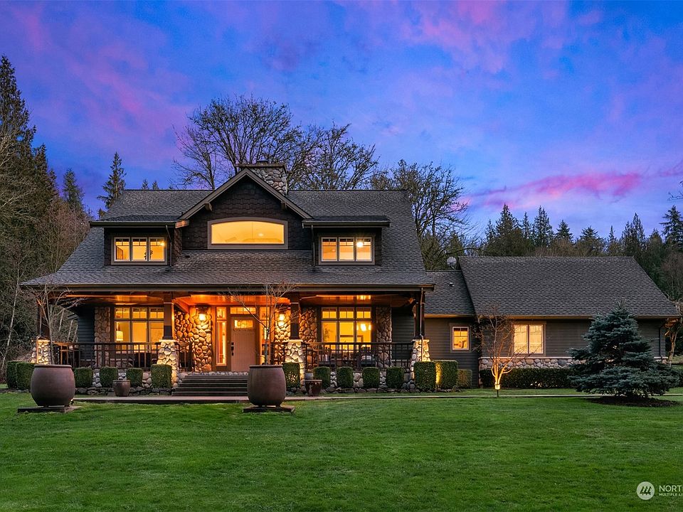 Bespoke North Lord Hill Craftsman on Professionally Maintained Estate with Idyllic Rail Fencing, Gated Entry, Sinuous Pathways, Expansive Patios, Wood-lined 'Modern Farmhouse' Covered Porch and Abundant Exterior Lighting. Vaulted Great Room and Entry Share Lodge-inspired, Dual-sided, Two-story Stone Fireplace. Graceful Architecture Encloses Voluminous Space with Skylights Admitting Luxurious Light. Cohesive Style Includes Vast Wood-framed Windows Framing Verdant Views, Mullioned Clerestory Windows and Wood-lined Barrel Vault. Master Suite, Office, Dining, Kitchen, Two Powder Baths and Laundry on Main; Three Bedrooms, Full Bath, Laundry and Bonus Room on Upper Level. Fenced Garden, Sprinkler System, Pond, Potting Shed, Generator, Water Tank.