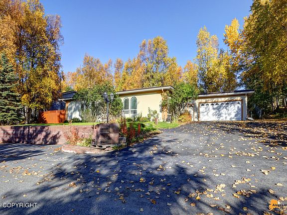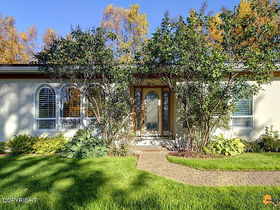 Distinctive ranch centered around a tranquil, light‑filled atrium that brings nature into daily living, with direct access from the primary suite, living room, and family room; this special space features high ceilings, radiant‑heated tile floors, a plumbed water supply for easy plant care, and an atrium roof approximately 7 years old. The living room offers built‑in shelving, anattractive tile surround fireplace, and sliding glass doors to the atrium, while a convenient hall half bath serves guests. The generous primary suite includes sliding doors to the atrium, walk in closet, and a fully tiled private bath with a jetted tub, separate shower with dual shower heads, and a double sink vanity. On the opposite side, the updated kitchen showcases granite countertops, a 5 burner gas range with downdraft, double ovens, a compactor, classic white cabinetry with two glass front displays, and a bright south facing window. Rounding out the interior are two additional bedrooms, a full bath, and a dedicated laundry area. A glass back door opens to a large, heated patio, hot tub, and a fenced yard beautifully landscaped with perennials, plus a 10x18 storage shed on a 15,500 SF lot. One of the home's standout features is the oversized 972 SF garage with a separate workshop area, built in workbenches, wiring for a generator, plumbing for a woodworking dust collection system, its own 1/2 bath, and direct access to the backyard. Large paved driveway with side parking for RV or toys. Well cared for and thoughtfully updated, the property includes a $40K+ roof completed about 2 years ago, a new septic system and landscaping in 2025 for $50K+ and a boiler replaced approximately 6 years ago. Pre inspected with repairs complete, this move in ready home sits in an awesome neighborhood close to shopping and serves as a convenient gateway to all adventures South of Anchorage truly a prime location.
