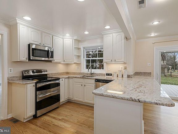 Sought-after model with inviting covered front porch and well-designed floorplan featuring main level owner's bedroom suite. Located on a large .44-acre lot with fenced backyard and is in the popular Strathmore at Bel Pre-community within a few blocks of the neighborhood pool and tennis club. Recent improvements include new 2020 high-quality owner's bathroom, new oak floors in owner's bedroom and main level office/bedroom, upgraded 2019 upper level hall bath, new 2019 gas furnace and air conditioning unit, owned solar panels added in 2018, and new 2020 vinyl siding and gutters and downspouts. The home also features a gorgeous 2012 remodeled kitchen with stainless steel appliances, granite countertops, breakfast bar, and recessed lighting; new 2012 wood flooring in kitchen, family room, and living room; and new 2012 ceramic tile floor in foyer, hallway, and dining room. There is a walk-in attic for storage and over-sized two-car garage. The home is conveniently located within approximately three miles of Glenmont Metro Station and within minutes of the Layhill Road exit for the ICC Highway, Ride-On and Metrobus services, Matthew Henson Trail and State Park, shopping, restaurants, and elementary schools.